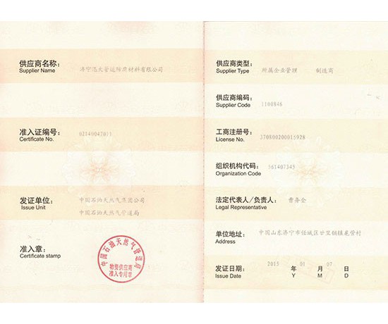 中石油一級(jí)供應(yīng)網(wǎng)絡(luò)證書